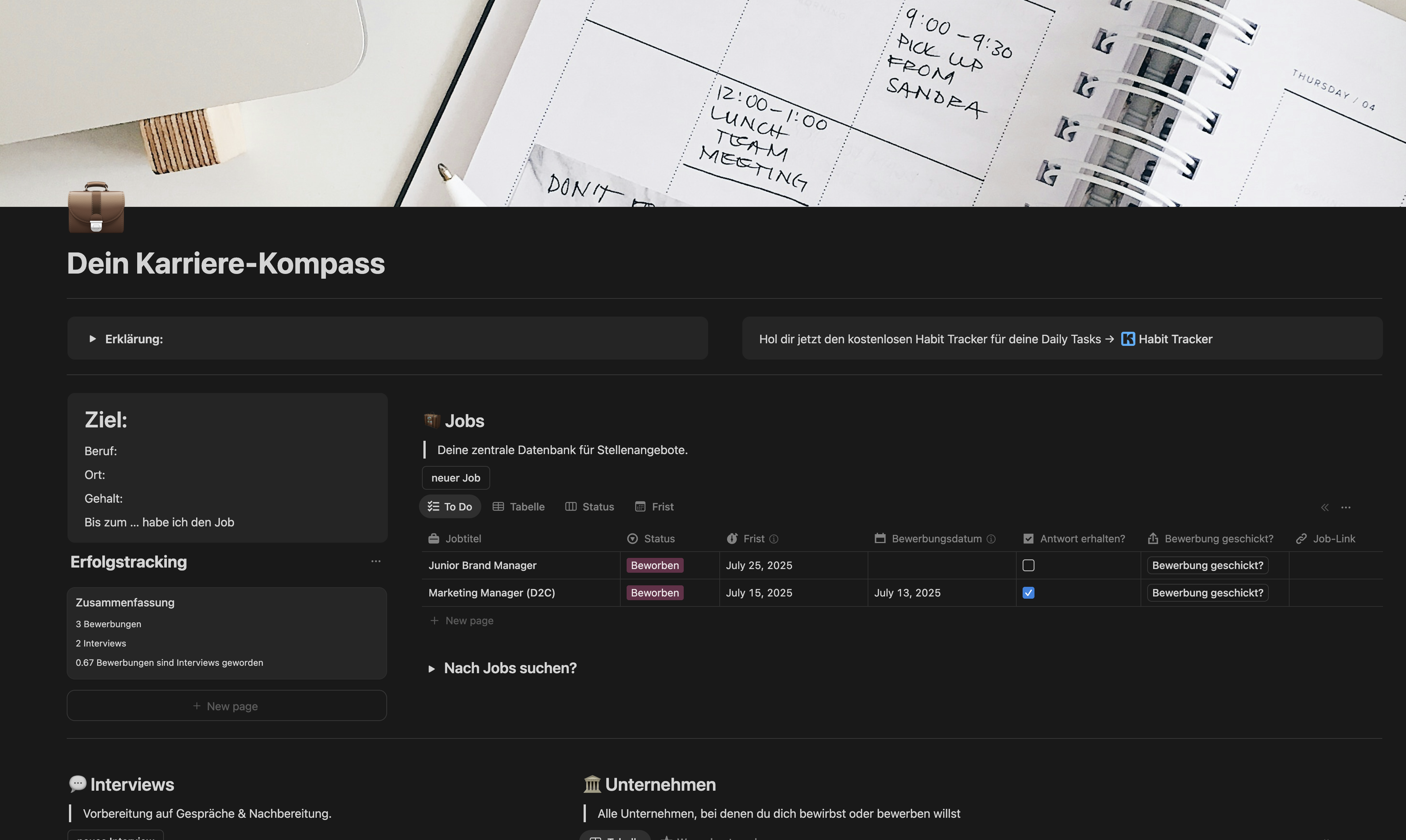 Der Karriere-Kompass ist das ultimative Bewerbungs- und Karriere-Management-System in Notion.